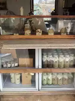 The bottled drinks and pound cakes seen from the exterior are so cute