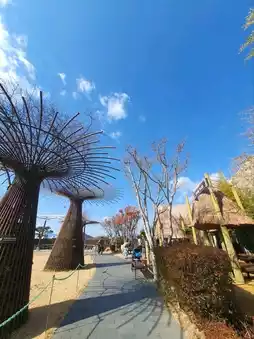 There are slides and a merry-go-round as play equipment. In the summer, there is also a small fountain space where you can play in the water. It comes out. There is also a rest area for guardians, so the whole family can enjoy it comfortably.