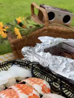 This moment of eating delicious food and spending leisurely time with your dog on the green grass!