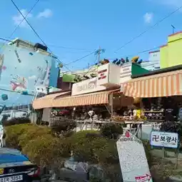 Gamcheon Culture Village in Busan is a vibrant and artistic neighborhood known for its colorful houses, steep streets, and artistic charm. The village features many small shops that sell local handicrafts, souvenirs, art, and food. Visitors can find unique items like handmade jewelry, traditional Korean crafts, and various art pieces created by local artists. Cafés and eateries within the village offer local delicacies and refreshments, making it a popular spot for tourists seeking a blend of culture, art, and cuisine. The overall atmosphere is lively and welcoming, encouraging exploration and appreciation of the neighborhood's creative spirit.