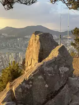 Yeongdo Bongraesan is a really beautiful place! The hiking trail is well-maintained, so it's easy to walk to the top, and there are chairs here and there, so it's a really good place to take a break and enjoy nature.