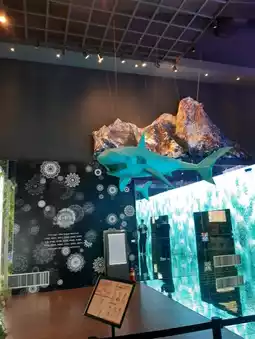 What was especially impressive was the cute exhibition hall themed on animals. The animal illustrations covering the red walls and the decorations sparkling on the ceiling were so pretty that I enjoyed taking pictures! And the turquoise shark sculpture was the perfect photo zone. 📸