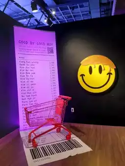 You could also see a fun shopping cart installation art at the exhibition. The star-filled bed is a must-see in this space full of artistic sensibility!