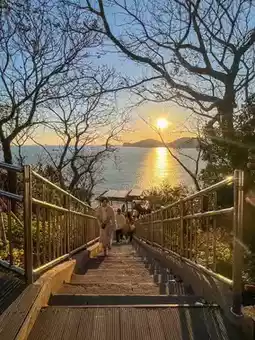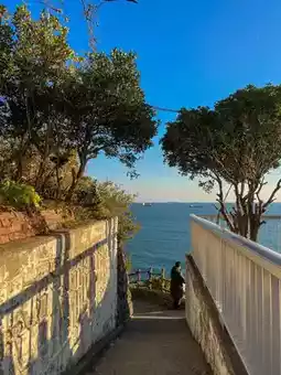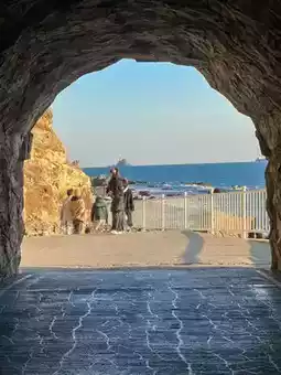 Take a photo with the sea in the background at the entrance and exit of the coastal tunnel