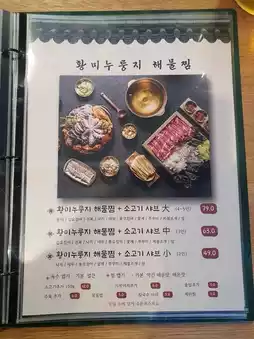 Fresh seafood stew is the signature menu! It's filled with various seafood such as large scallops, octopus, and shrimp. You can adjust the spiciness to your taste!