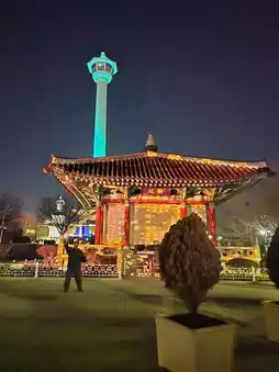 That's why I visit Yongdusan Park like a must-see when I visit Busan. I went and immediately recognized it! The night view was pretty, and the media art was amazing. It was a Busan date course🩵