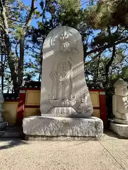 It's believed that if you pray sincerely to the 10-meter-tall Haesu Kannon Buddha, one wish will be granted. Visitors can purchase a tile with their wish on it for 10,000 won and donate it to the temple. It's also said that if you write your wish for love on a gold leaf (1,000 won) or successfully flip a coin, your wish will come true.