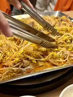 The bean sprout bulgogi konbull stir-fried on a hot plate has an irresistible savory aroma and juicy meat juice. The crispness of the bean sprouts is fully utilized, and the sweet and spicy sauce is exquisitely mixed in. The flavor spreads with every bite, stimulating your appetite.