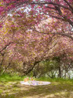 The park with double cherry blossoms in full bloom is pretty, and many people come for a double cherry blossom picnic. Since there are many people in the front, it is easy to find your own good spot and photo zone if you go inside the park🫶