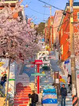 #spring travel #cherry blossoms #cherry blossom attractions #cherry blossom travel #Busan cherry blossoms #cherry blossom viewing #Busan cherry blossom attractions #Busan travel destinations #Busan places to visit #Dakbatgol Mural Village #Sanbokdo road cherry blossoms