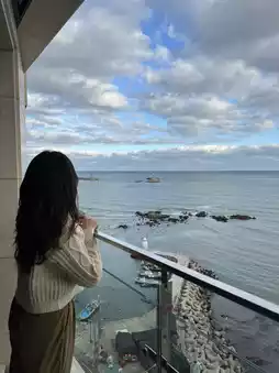The sunset is especially pretty, so it was a healing time just watching it from the room🫧 In the evening, there's delicious food and a bulmyeong, which is perfect🫶🏻