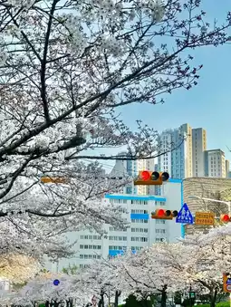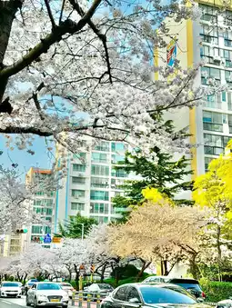 Namcheon-dong Cherry Blossom Road in Busan is one of the most representative cherry blossom viewing spots in the area. When spring comes, the cherry blossoms here are in full bloom, forming a charming pink and white flower tunnel, attracting countless tourists and local residents to stroll and take pictures here.