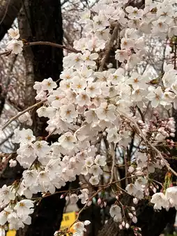 In addition to cherry blossoms, white magnolias and Korean forsythia, they complement each other. There is also a whole row of foodcars parked in the driveway where you can buy snacks to fill your stomach.