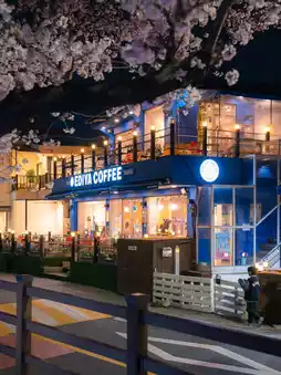 Amidst the night view of the city and the atmosphere full of cherry blossom sentiment,