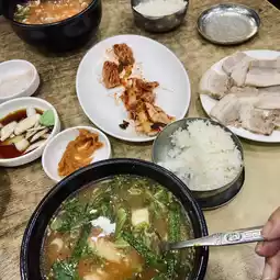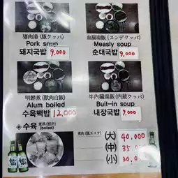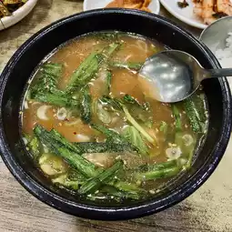 The soup here is more like the pepper pork belly hotpot style, with a distinct pepper aroma, and tastes very warm to the stomach. The ingredients are also generous, with plenty of pork slices, blood sausage and offal. It is recommended to pour white rice into the soup and eat it together, making it Korean soup rice. It is really delicious after absorbing the soup.