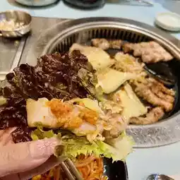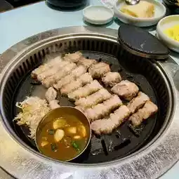 The vegetable side dishes are generous, with unlimited refills of perilla leaves and lettuce. The variety of side dishes is diverse and flavorful, perfectly complementing the grilled meat and providing a refreshing balance. The highlight is the hot shrimp paste dipping sauce served on the grill—it’s salty, aromatic, and packed with rich shrimp flavor, making it the soul of the meal. Definitely a must-try!