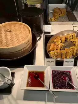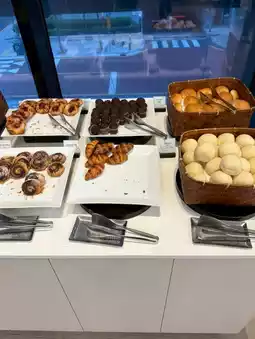 - Desserts and coffee: There are freshly baked croissants and blueberry bread. The coffee is from a self-service machine but the taste is good.