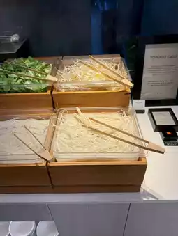 - Salad and fruit area: fresh vegetables, a wide selection of sauces, and even the fruits are unexpectedly sweet.