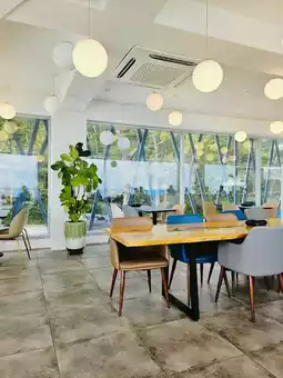 Order a cup of coffee and you can get an admission ticket to the backyard. Each of these shooting areas is beautifully designed, with swings, white arches, and blue windows. Any photo you take will look like a magazine cover, and you can get great photos without any retouching!