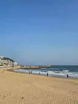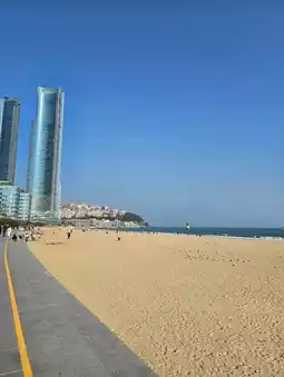 Recently went to โ๏ธ Haeundae, the most representative beach in Busan, Korea. ๐ Located on the southeast coast of Busan, Haeundae, the beach stretches for about 1.5 kilometers, the sand is soft and delicate, stepping on it is so comfortable that you don't want to leave. ๐๏ธโจ