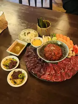 If you can't resist raw beef, salmon, and Japanese sake, then you must go to this izakaya in Gwangalli, Busan, which has a late-night canteen feel - 경성육회관 (Gyeongseong Meat Restaurant). The main dish here is "fresh beef slaughtered that day", and even Korean friends who are experts recommend it. It is the kind of surprise restaurant that you will want to visit again after eating it!