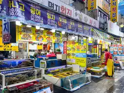 "When you think of Busan, this is the place to go! The variety and scale of fresh fish is overwhelming. The service of having your fish cooked on the spot in the restaurant on the second floor is popular. A wide variety of seafood including squid, octopus, and sea urchin!