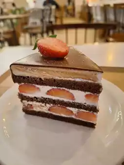 The strawberry chocolate cake was delicious, with sweet strawberries and not-too-sweet whipped cream!