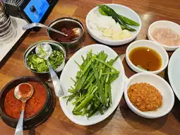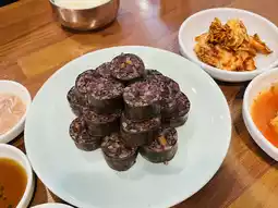 Jeju Mat Sundae Main Branch is a restaurant in Busan where you can enjoy the flavors and vibes of Jeju Island. The entrance, painted in bright orange, is eye-catching, and a Dol Hareubang statue welcomes you. The interior is decorated with unique and exotic items, adding to the charm. Their signature dishes include Gosari Haejang-guk (bracken hangover soup) and Momguk (pork and seaweed soup). The atmosphere is also perfect for solo diners. Highly recommended is their handmade sundae (Korean blood sausage), which is packed with flavor. A hearty meal awaits at this Busan gem.