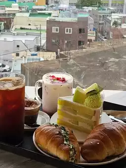 A stunning café offering panoramic views of the Busan Harbor Bridge.
