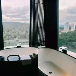 The hotel bedding was plush, the bathroom was clean and fragrant,