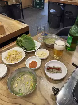 Freshly grilled hagfish has a chewy texture that's absolutely addictive! Wrap it in sesame leaves with ssamjang, bean sprouts, and garlic for a perfectly balanced taste ✨️