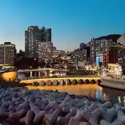Standing on the blue sea, overlooking the beautiful night view of Songdo