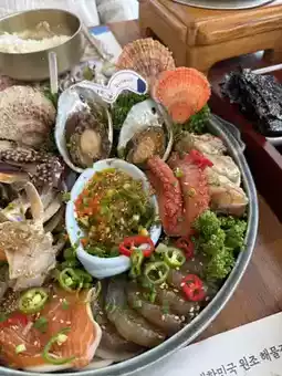 This store has always been stored in my food pocket, and this time I finally have the opportunity to come! And because of my schedule, I chose to go to the Guanganli branch. Basically, friends who want to eat pickled seafood, don’t think about it and directly order the "Beauty Pickled Seafood Set". It is calculated per person, ₩43,000 per person, starting from two people. The set will include 8 kinds of pickled seafood (soy sauce female crab, soy sauce male flower crab, abalone, soy sauce shrimp, snail, shellfish, pickled salmon, octopus), stone pot rice, side dishes, and kelp soup.