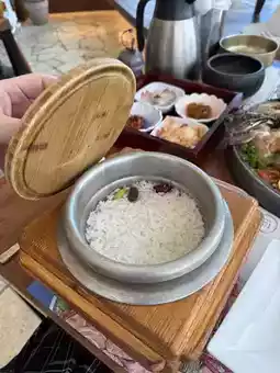 The rice in the stone pot rice can be placed in an iron bowl first, and then the rice crust soup in the kettle is poured into the stone pot and the lid is closed. In the end, it will become a rice crust soup, which tastes quite special!