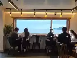 This cafe on the cliffs of Shirase Cultural Village had a great view.