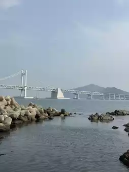 ☑️ Gwangalli Beach is a beautiful beach located in Suyeong-gu, Busan. Clear blue sea and fine sand are its features