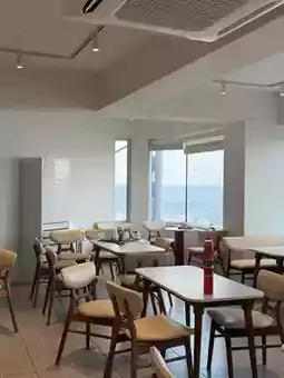 🏷️Tables and seating are arranged in various ways. 🩵The window view is so pretty