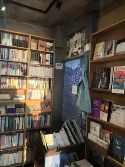 • The bookshelf is well-stocked with a variety of independent publications, poetry collections, and essays
