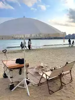 Right in front of the beach, so swimming and walking along the beach are also possible.