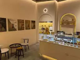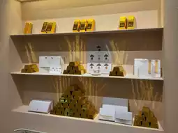 In particular, the unique desserts, such as gold bar-shaped cakes, are displayed in an actual vault space, drawing attention.