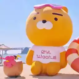 - **Giant Ryan & Apeach:** Pose with the **super-sized plushie versions** of Kakao’s mascots against the ocean backdrop. 🦁🍑
