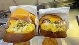 EGGDROP's breakfast is perfect for a toast lover like me. This location in Seomyeon Lotte is quite small, with only about 10-12 seats. Despite the small size, it didn't dampen my enjoyment of breakfast. We ordered a toast combo, hash browns, lettuce salad, and black tea. Having a hot breakfast in the morning was truly blissful. Ordering at this place is done with a coin-operated machine. After ordering, you hand the order slip to the counter, and they'll prepare it. Because the location is so small, it felt a bit cramped while eating, but it was a wonderful experience. #BusanItinerary