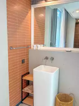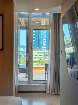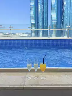 The rooftop pool on the 12th floor also has a restaurant, where you can even get a welcome drink!