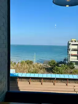 From the window seats, you can take in the stunning view of Songjeong Beach's blue waves and white sandy shores, making it an ideal place for photography 📸✨