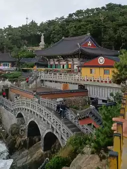 Originally built during the Goryeo Dynasty, Haedong Yonggungsa is a historic temple filled with various statues and pavilions, making it a delightful place to explore. The large Buddha statue and stone pagoda set against the ocean backdrop are perfect for photography, and as you climb the stairs, you'll find several spots to make wishes, which are popular among travelers. π