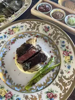 (Hanwoo flower-shaped steak, sirloin, shrimp, caviar, abalone sashimi, grilled meat, lobster sashimi, grilled meat, king prawn and scallop meal, dessert)