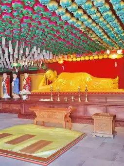 One of the must-visit attractions in Busan is Haedong Yonggungsa Temple🙏. Perched on a cliff by the sea, this temple is famous for its unique scenery that blends the ocean with Buddhist culture. It's especially well-known as a sunrise spot, so visiting early in the morning allows you to experience the majestic atmosphere as the sun rises above the horizon🌅. Walking around the temple, you'll encounter various Buddhist sculptures, including the Dragon King statue, all set against the stunning backdrop of the sea—truly a memorable sight.