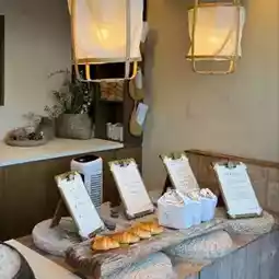 The only menu item they have is a set of four salt breads for 12,000 won (approximately 300 baht). They don't sell them individually. It's perfect for a group of four.