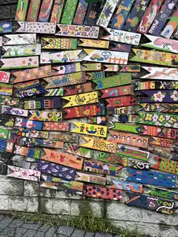 Winding alleys reveal walls and windows adorned with unique artistic expressions. Paintings and decorations breathe life and whimsy into the entire village.