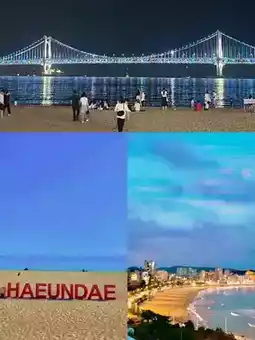 Gwangalli Beach is known for its dazzling night views✨. During the day, it's ideal for a leisurely stroll, and at night, you can enjoy a romantic beer with the illuminated Gwangandaegyo Bridge in the background🍺. It's a great spot for a casual outing with friends.